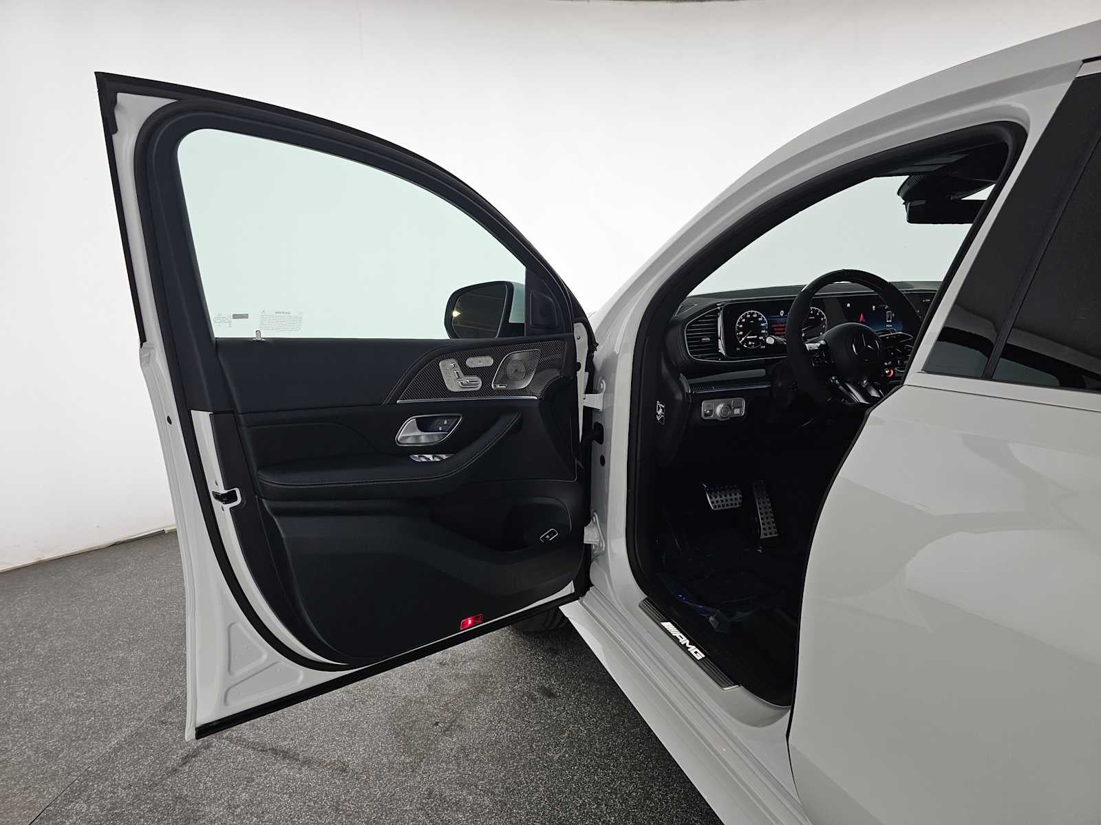 Nav System, Moonroof, Heated Leather Seats, Panoramic Roof, WHEELS: 22 AMG® CROSS-SPOKE FORGED, AMG® PERF STEERING WHEEL IN CARBON FI. DRIVER ASSISTANCE PACKAGE. MANUFAKTUR Moonlight White Metallic exterior and Black interior.