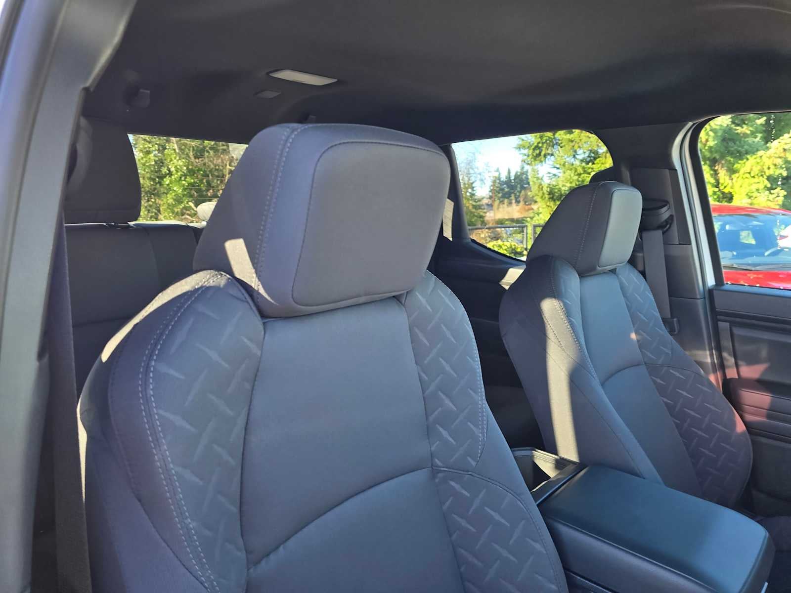 - Fabric-trimmed seats; 6-way manually adjustable driver and front passenger seats with 2-way power-adjustable lumbar support on driver's seat only