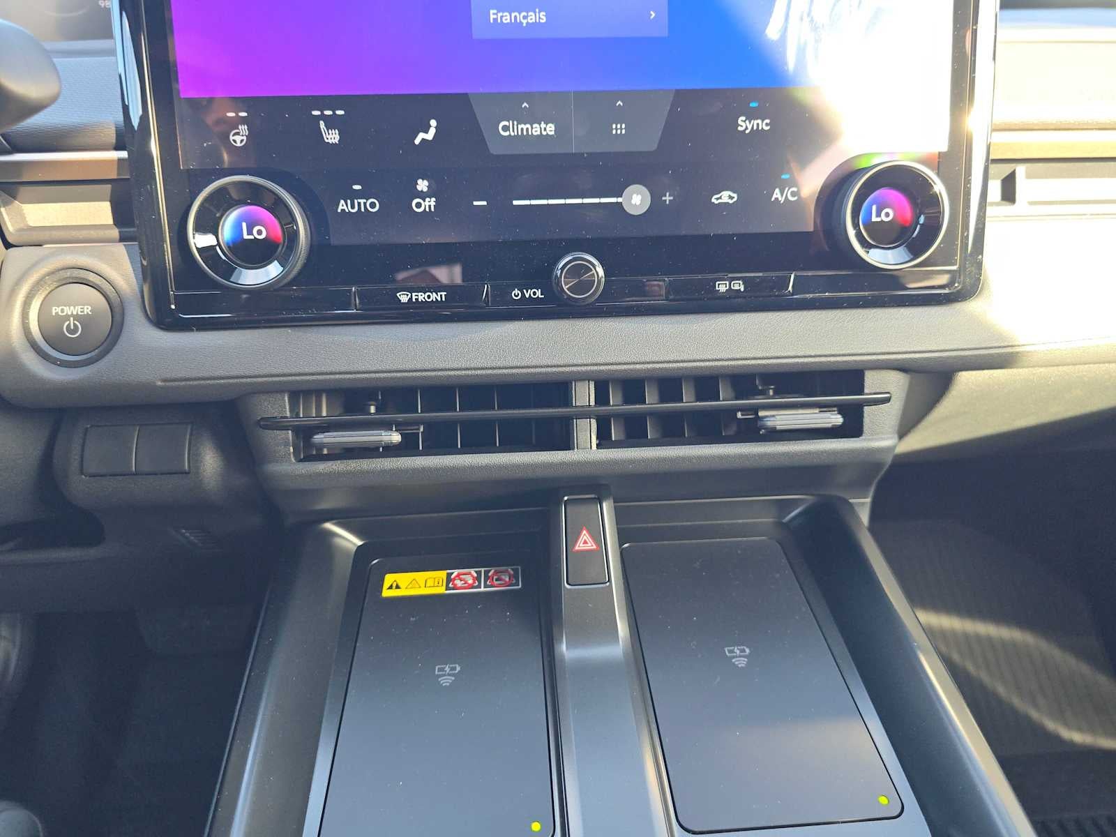 - Center console with covered storage compartment, two cup holders, two Qi-compatible wireless chargers [qi_wireless] and front lower storage tray