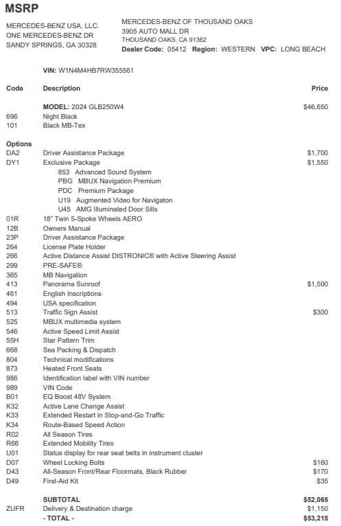 - Vehicle Name: Mercedes-Benz GLB